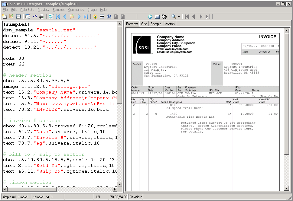 The UnForm design tool provides a comprehensive rule file development and testing environment.